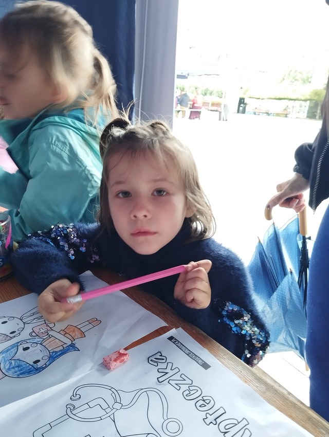 Choć pogoda nie była najlepsza, przeprowadziliśmy warsztaty plastyczne o tematyce Pierwszej Pomocy Przedmedycznej a także o tematyce strażackiej