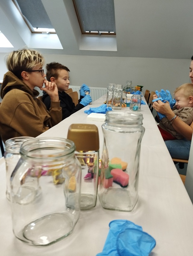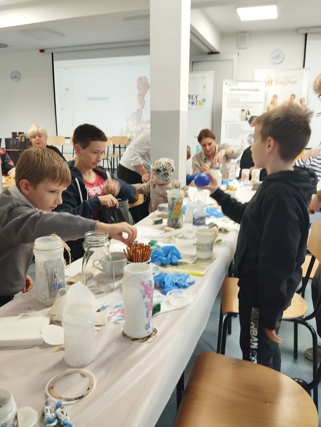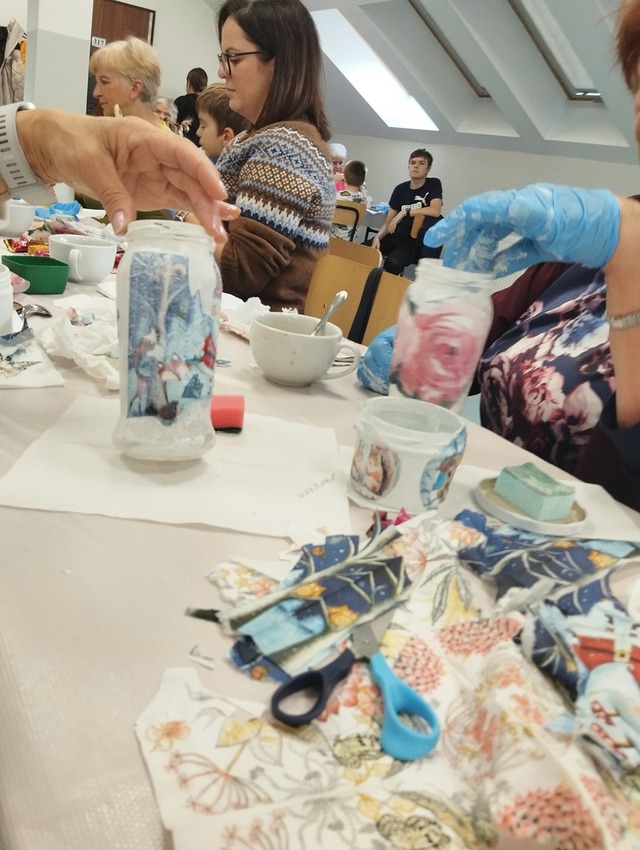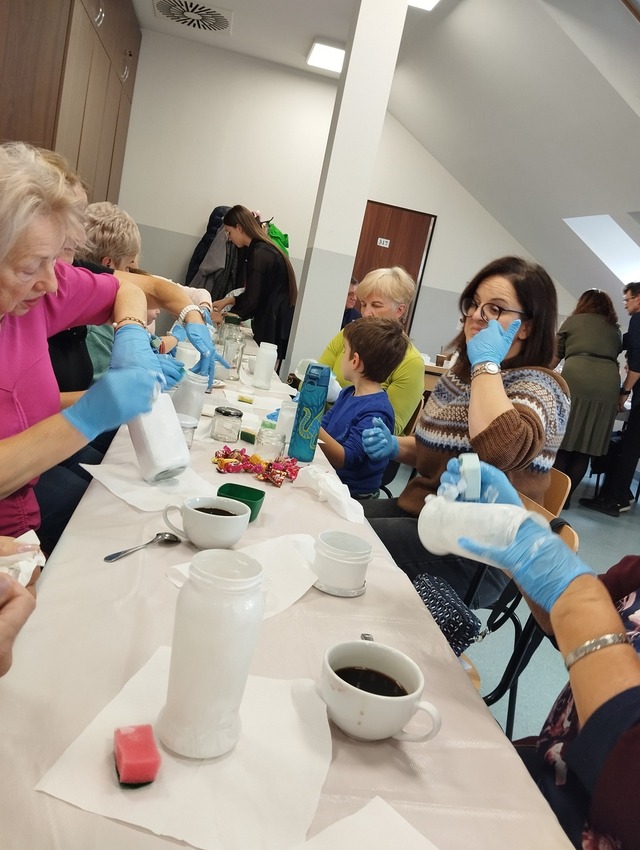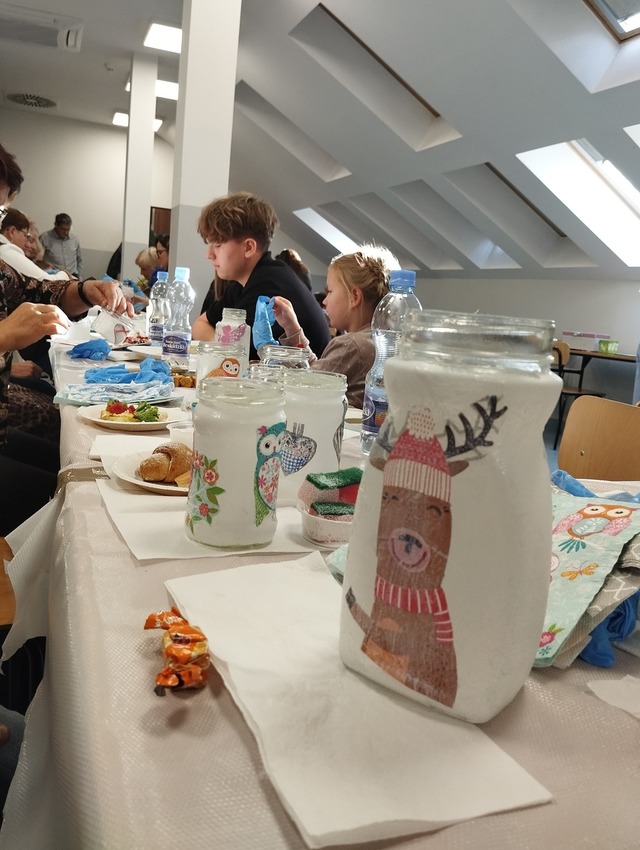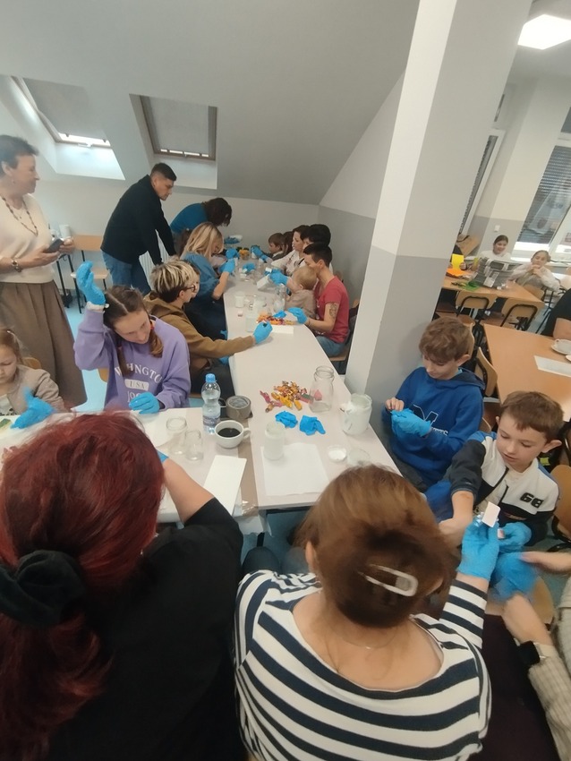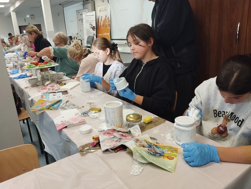 W niedzielne popołudnie 26.10.2025r, rodziny spotkały się w CKZiU nr 1 Tischner aby pod okiem Pani Natalii Jóźwik tworzyć wyjątkowe prace. Na szklanych słojach tworzono decoupage
