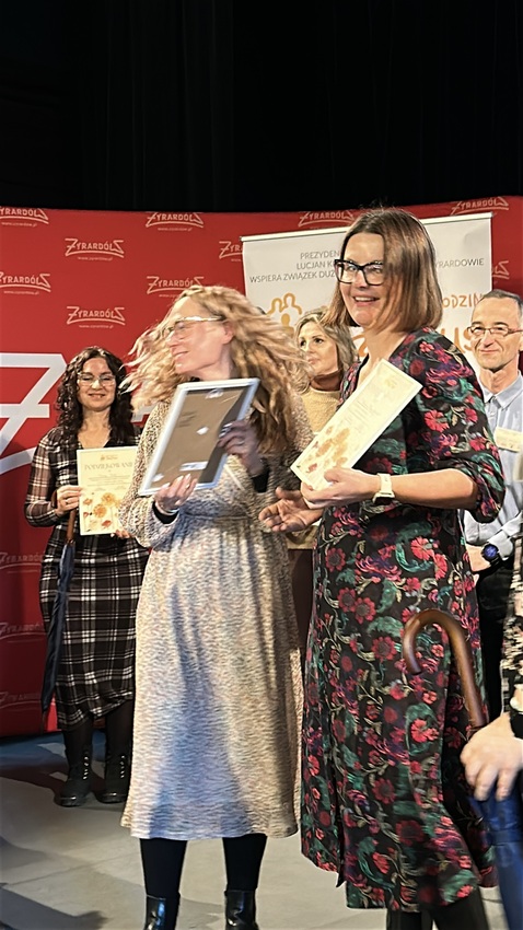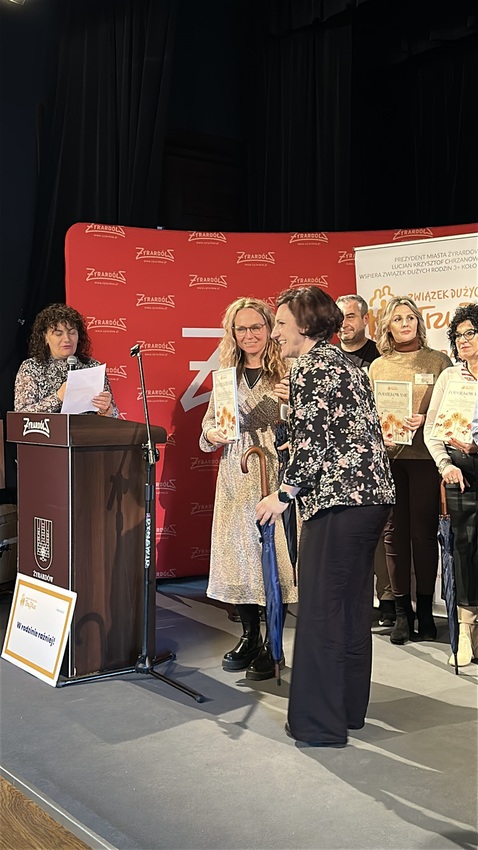 Na scenie pojawili się także Państwo Dziubkowie z Czarnego Dunajca, wyróżnieni za swoją pracę na rzecz lokalnej społeczności. Wszystkim serdecznie gratulowała opiekunka projektu — Sylwia Skóra, a także sam Prezes.