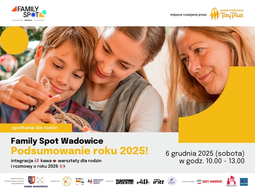 Serdecznie zapraszamy rodziny na ostatnie spotkanie w ramach projektu #FamilySpotWadowice jako podsumowanie 2025 roku.